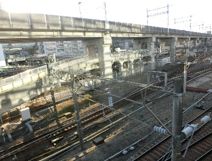 新田端大橋 巣鴨駅から乗った山手線を田端駅に降りた。当駅乗降は1,2度で、それも20年前程か。南口へ出ると、田舎駅のような出口。西側は直ぐ階段で高台へ上がる。芥川龍之介他の文士村記念館があった筈とキョロキョロしたが見当たらない。高台から田端駅北口前へ降りる長い階段があり、慎重に下る。橋上から操車場を眺めようと広い道路を渡り、下り側の歩道を進む。操車場は見下ろせるが、ネットがありカメラを向けるのは不適だ。渡り切り、JR東日本支社前へ出てシャッターポイントを探したが中々見付からない。植え込みの間から、操車場を見下ろすと、私の期待とは違い真ん中には高架の路線が走り、新幹線用のようだ。それでも、2,3回シャッターを切った。北口の方へと戻ろうとも思ったが、時間的余裕はなく、橋を渡り切り北側へ長い階段下りた。