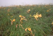 憧れのニッコウキスゲ 数年前、都営地下鉄のポスターでニッコウキスゲを見て、咲き誇るあの花の群を見てみたいと興味を抱き、尾瀬や奥日光、榛名山などを歩いた。尾瀬(96.7.27)はまあまあであったがその他では時期外れなどで出会うことはなかった。それが今年、偶々無理に訪ねた霧ヶ峰で実現し、ニッコウキスゲが大群で歓迎してくれた。